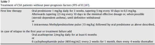 ・・あくまで私見です・・ EGPA(Churg-Strauss)を含むANCA関連血管炎の標準治療はEUVASという欧州の組織がRCTを元に気付いてきたました。 米国の著者による記載は以前より、これにすんなり従わない傾向を感じていましたが、最近はフランスを中心とするFVSG、…